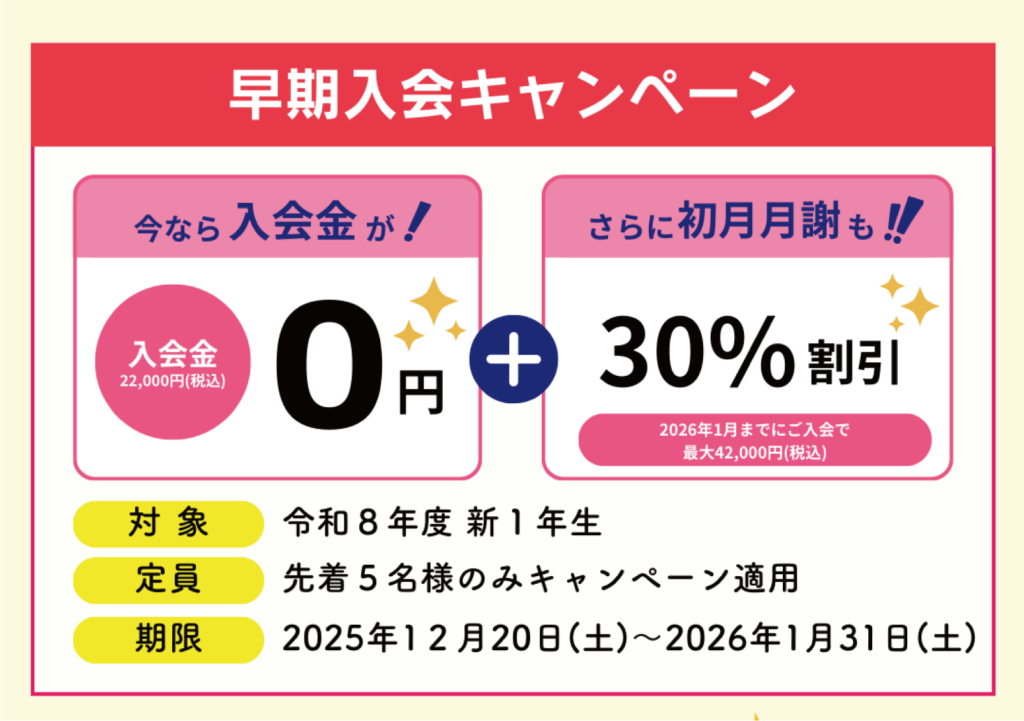 ※令和8年度 新2年生以上もご入会できます。ただし、今回の早期入会キャンペーンの対象ではありません。
