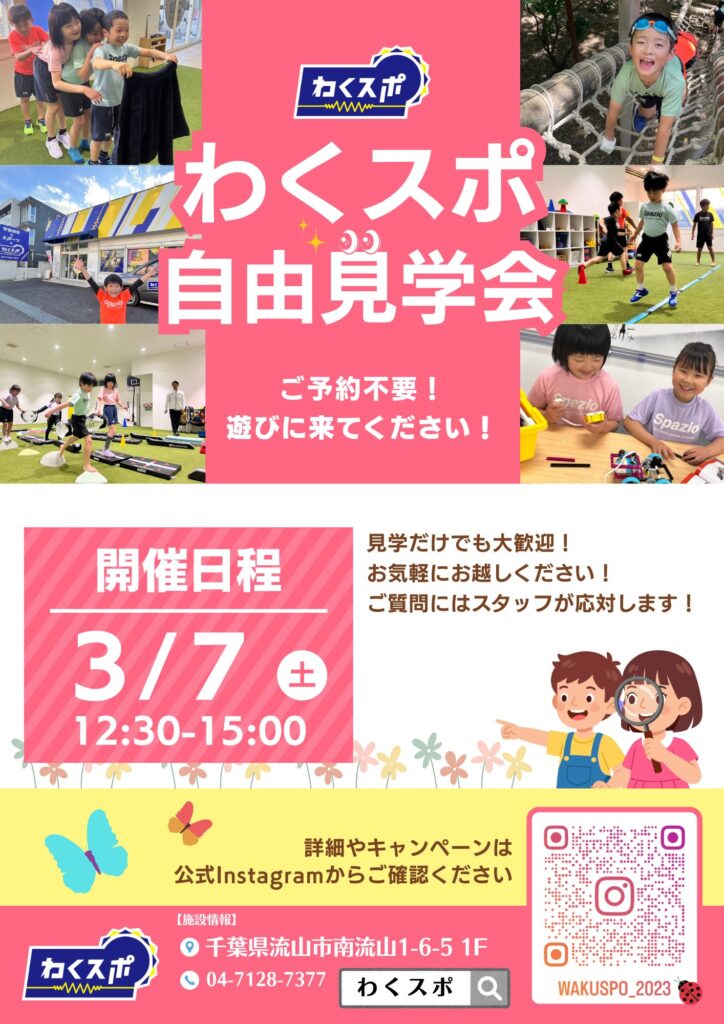 そんな疑問にお応えする、わくスポ自由見学会を【3月7日 (土) 】に開催します🎊